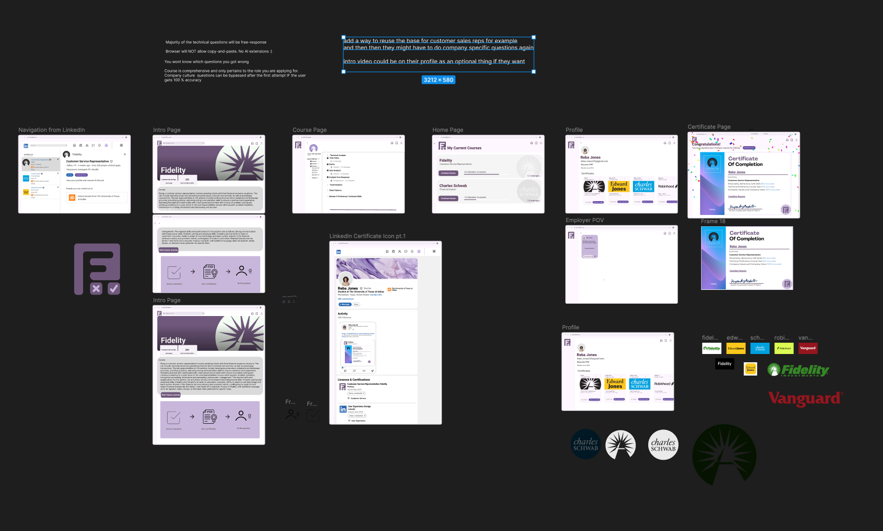 For Preface’s brand identity, we aimed for a look that feels credible enough for finance but still welcoming for users. During high-fidelity design, we built a mood board of real UI references (course platforms, LinkedIn style credibility cues, and well known finance brands) and used that to guide a clean, structured layout: clear page hierarchy, lots of spacing, and simple components that keep the experience easy to scan. The purple based palette and soft gradients helped us balance “professional” with “approachable,” so the product feels trustworthy without looking cold or corporate. The course and questions pages are mostly inspired by CourseEra's course pages and questions styles.