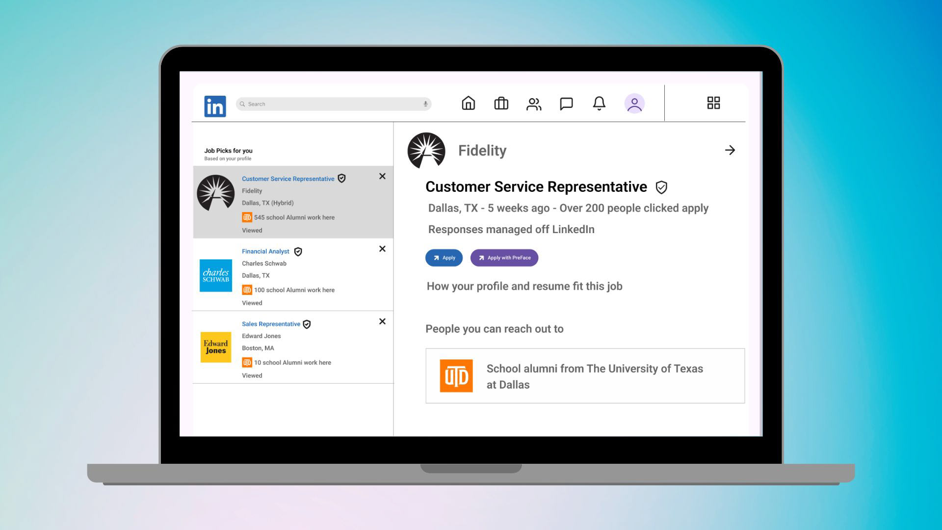 These high-fidelity screens show the full Preface flow from job discovery → skill proof → shareable results. We designed the experience to feel familiar and trustworthy by starting where many candidates already search (LinkedIn), then offering an “Apply with Preface” option that moves them into a clearer, guided path. Each company job page explains the role in plain language, highlights availability/expectations, and makes the next step obvious with a single call-to-action: Start Course Journey.